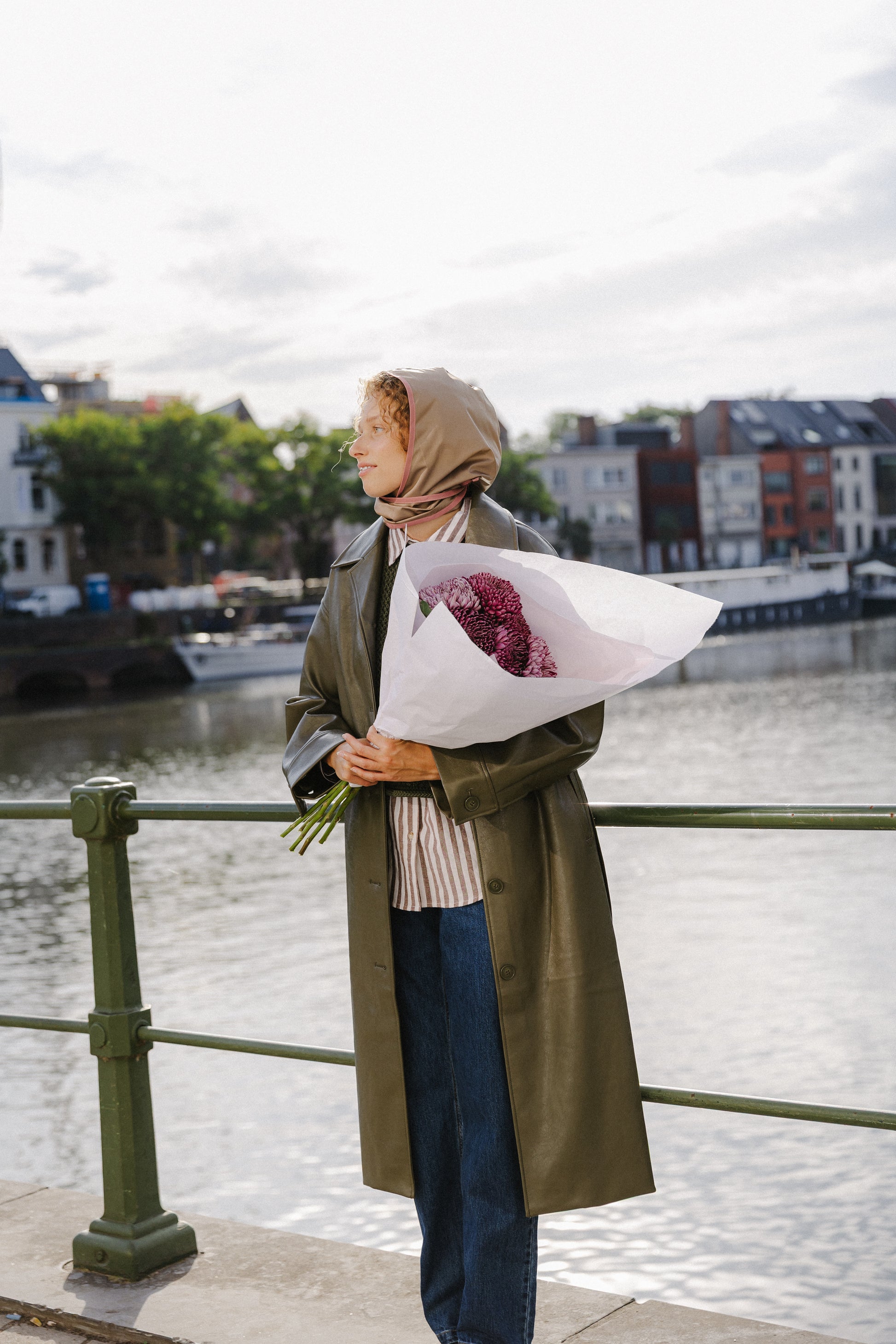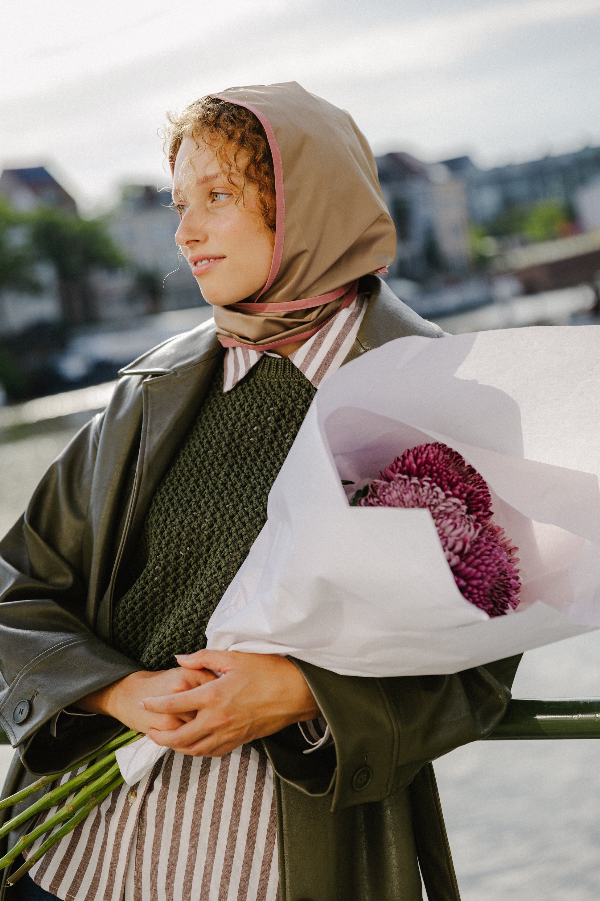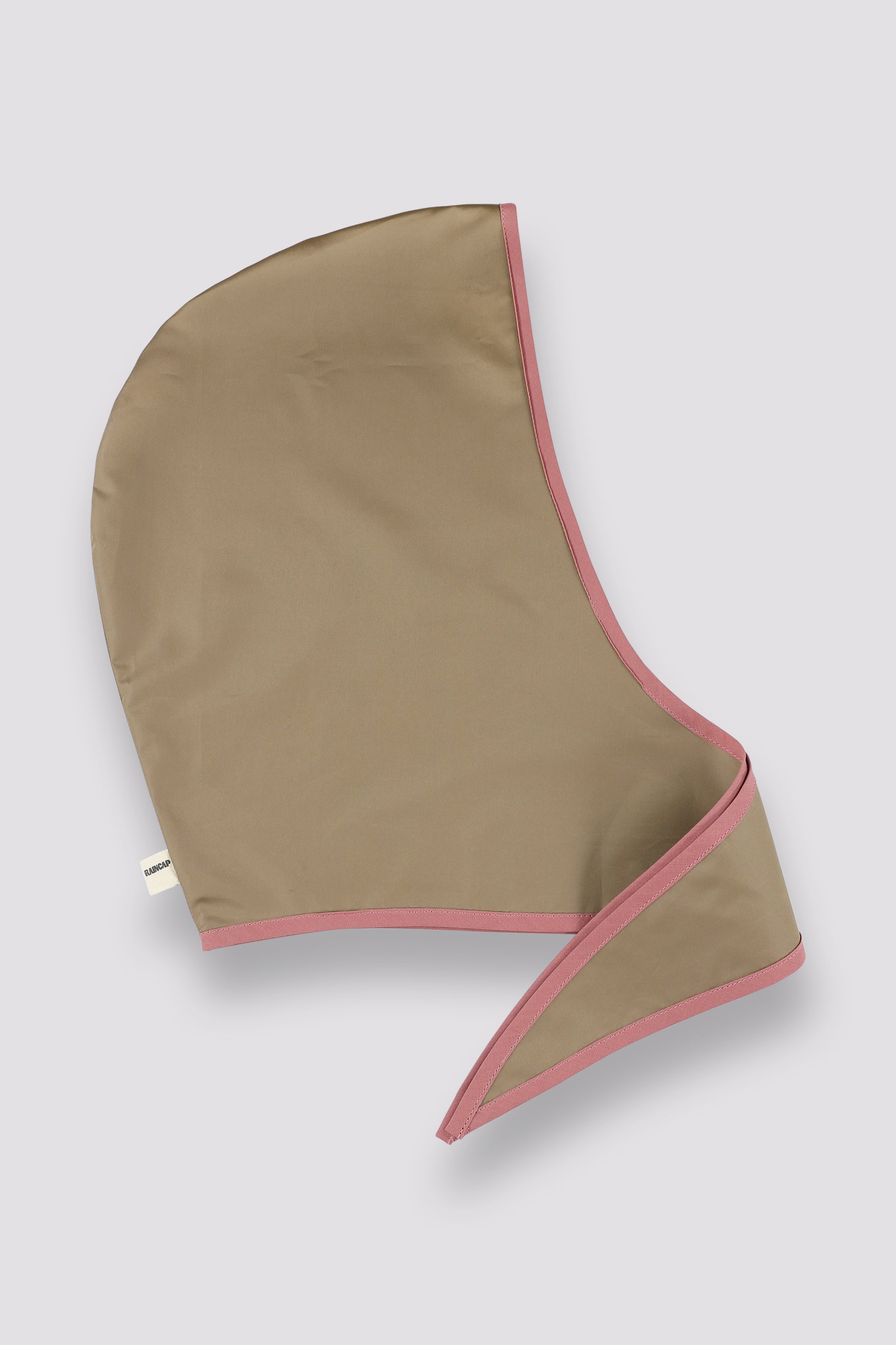 The LUCA RAINCAP is made from a soft beige Jill Sander fabric with a fresh warm pink edge.