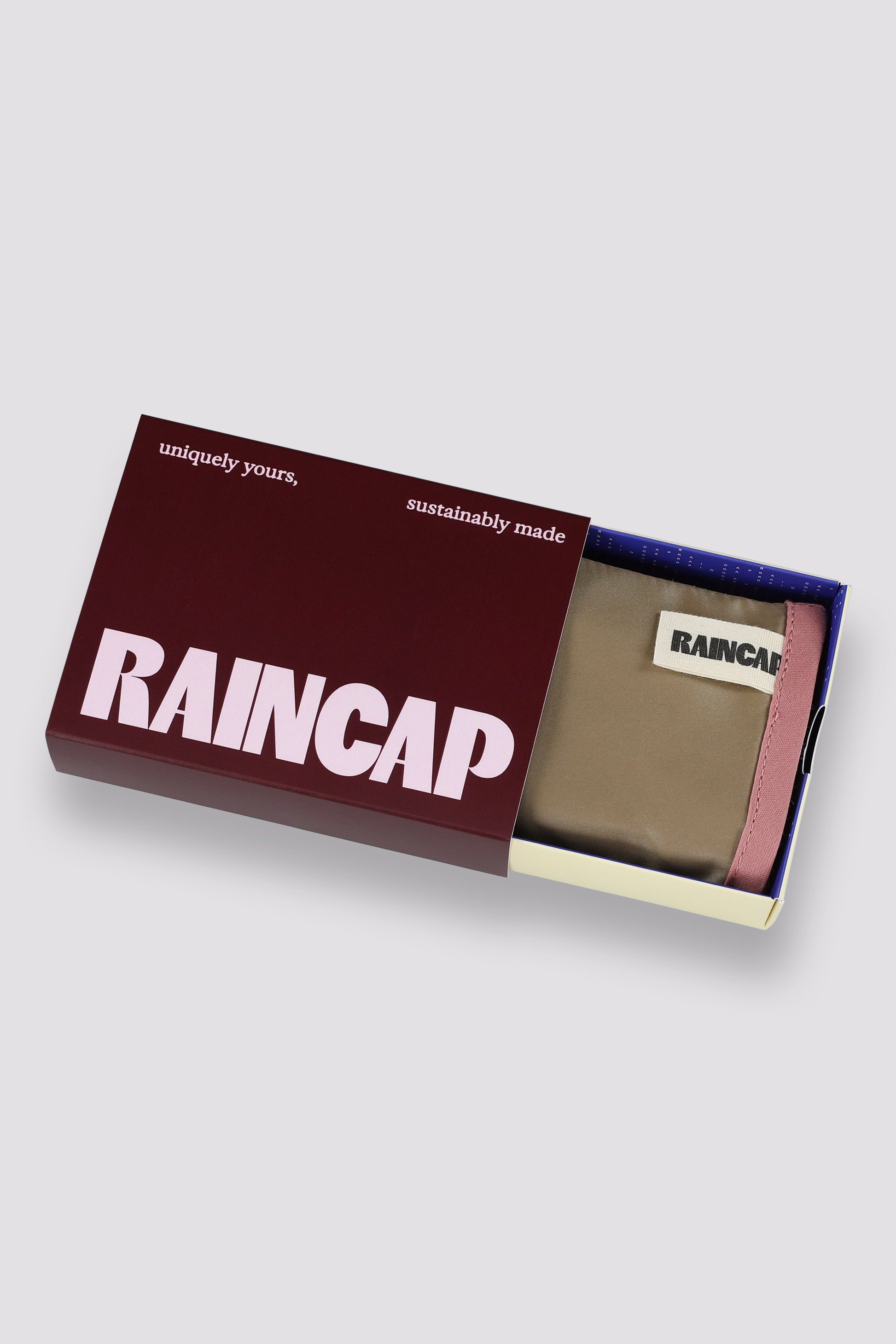A subtle accessory for first-time Raincapwearers, small enough to slip into your bag unlike your umbrella, which you always seem to leave behind.