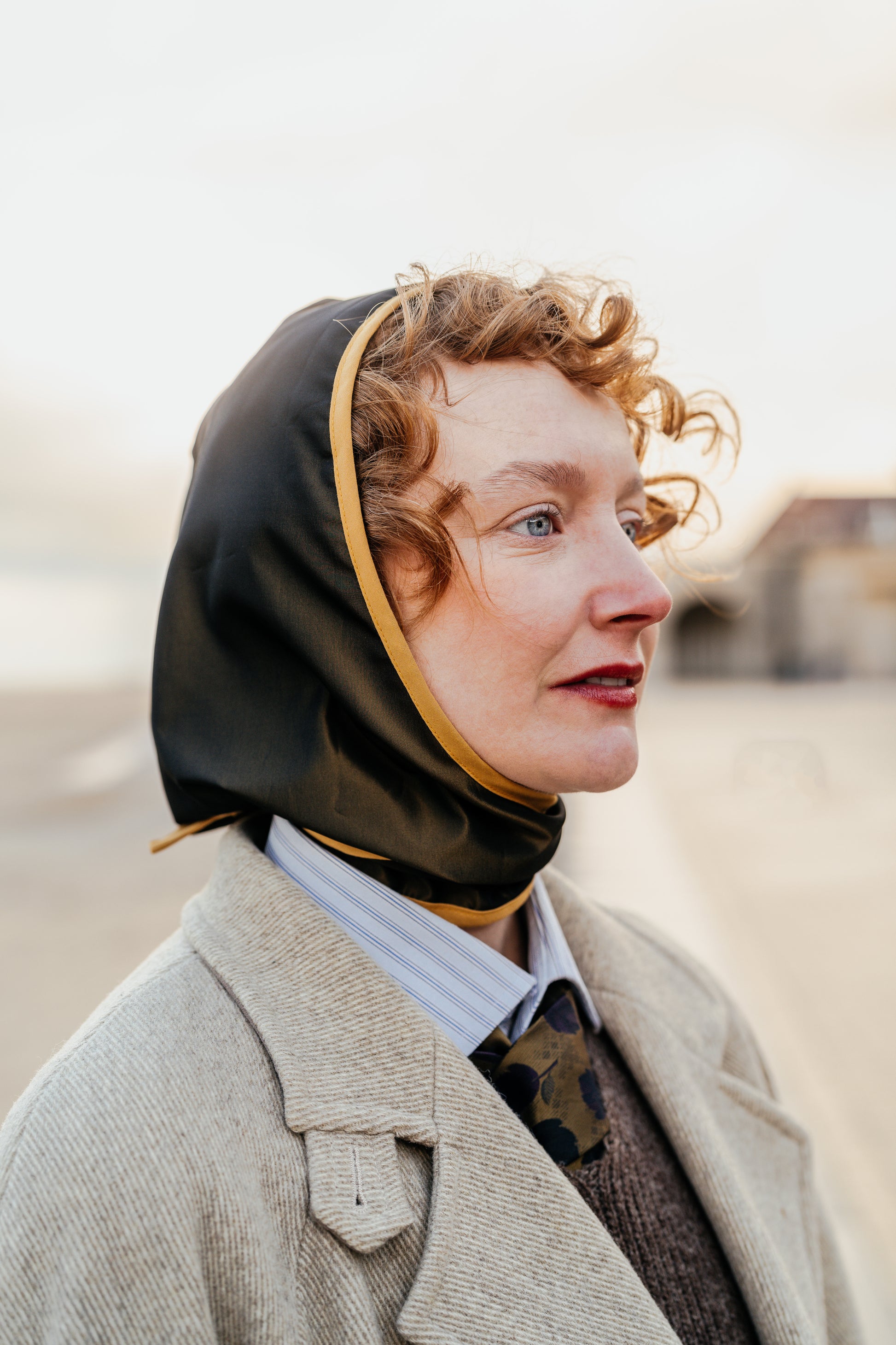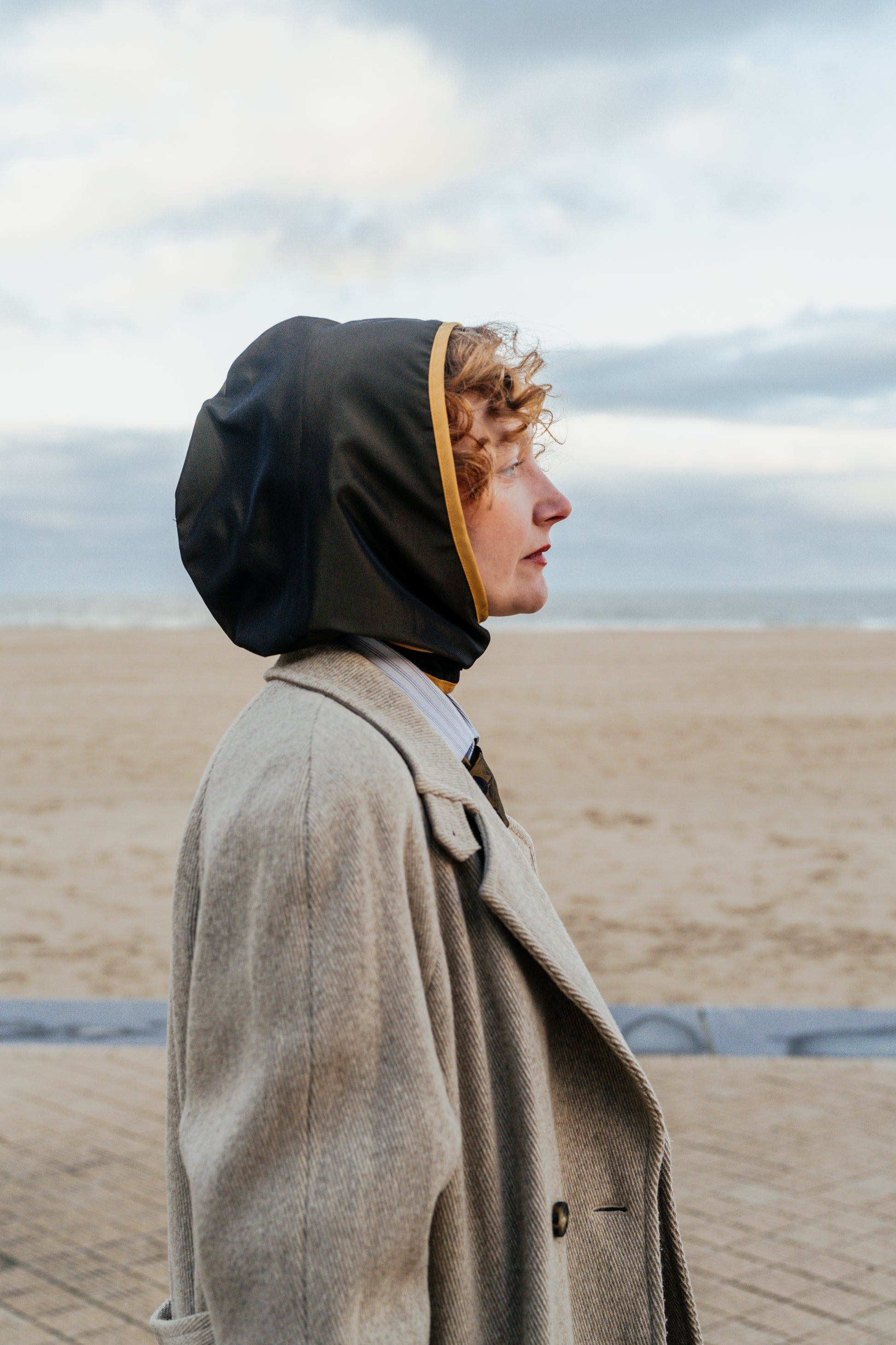 This versatile cap adds warmth and elegance to any outfit, perfectly complementing earthy tones and adding a touch of refinement, all while keeping you dry in style.